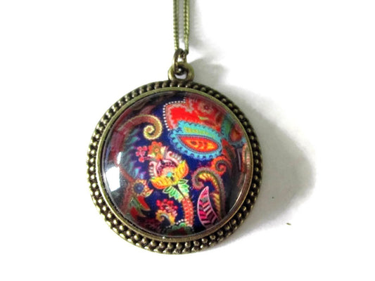 Collier Motif Paisley Bleu foncé
