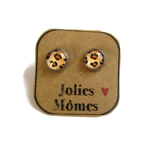Puces d'oreilles enfant motif léopard fait-main ♥