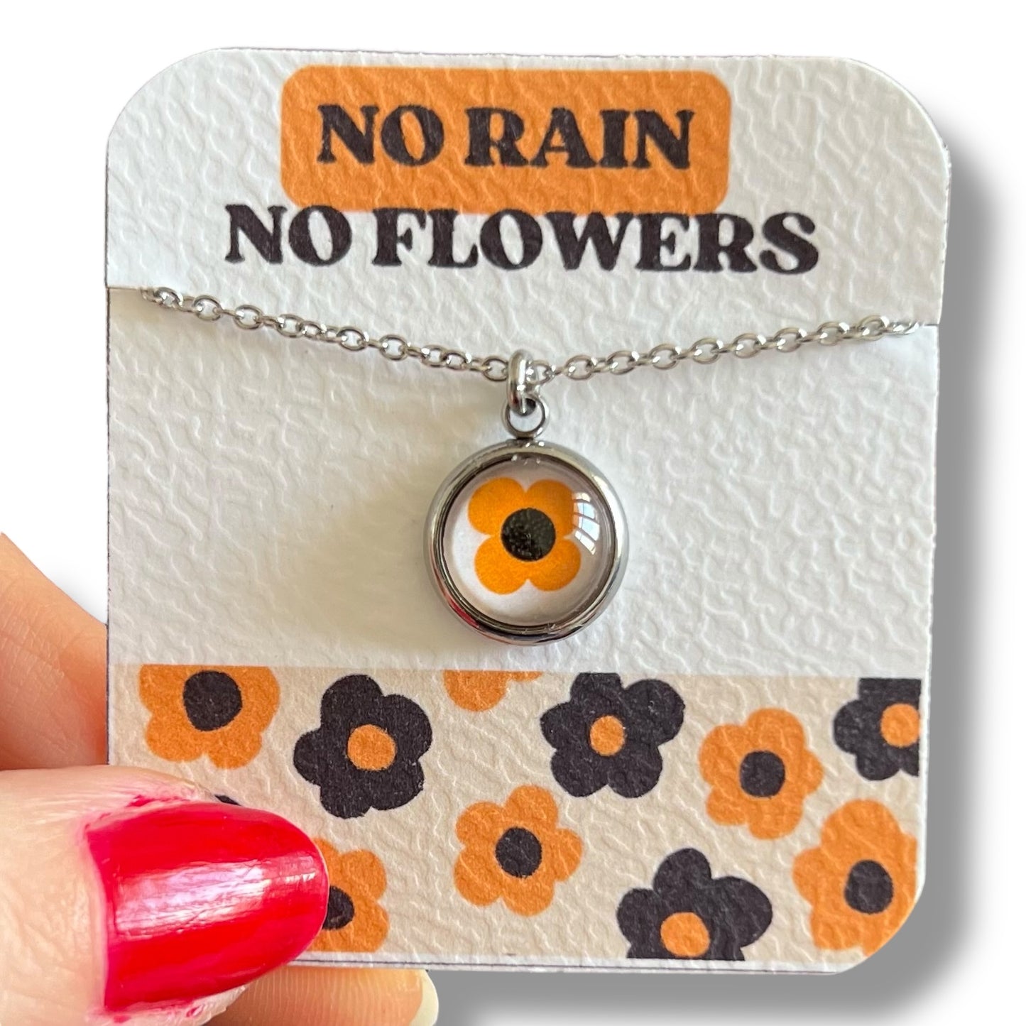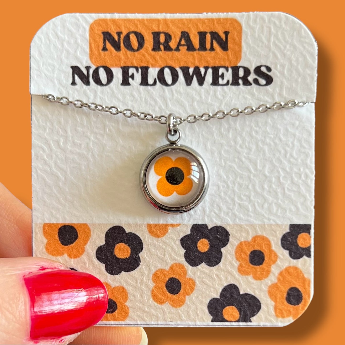 Collier Enfant Fleurs oranges et noires / No Rain, no Flowers!