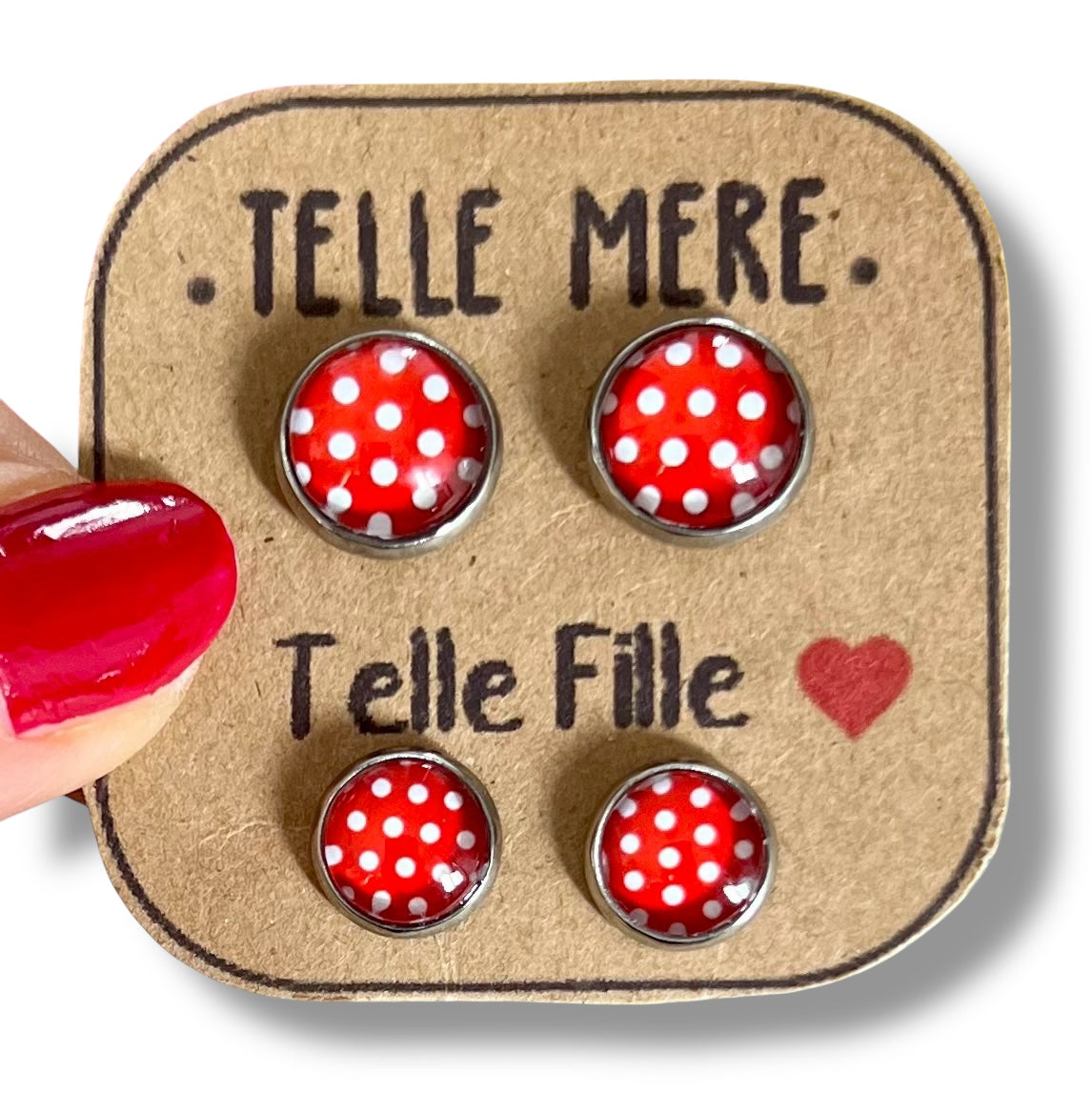Puces d'Oreilles Mère Fille / "Telle mère, Telle Fille!" pois rouges et blancs