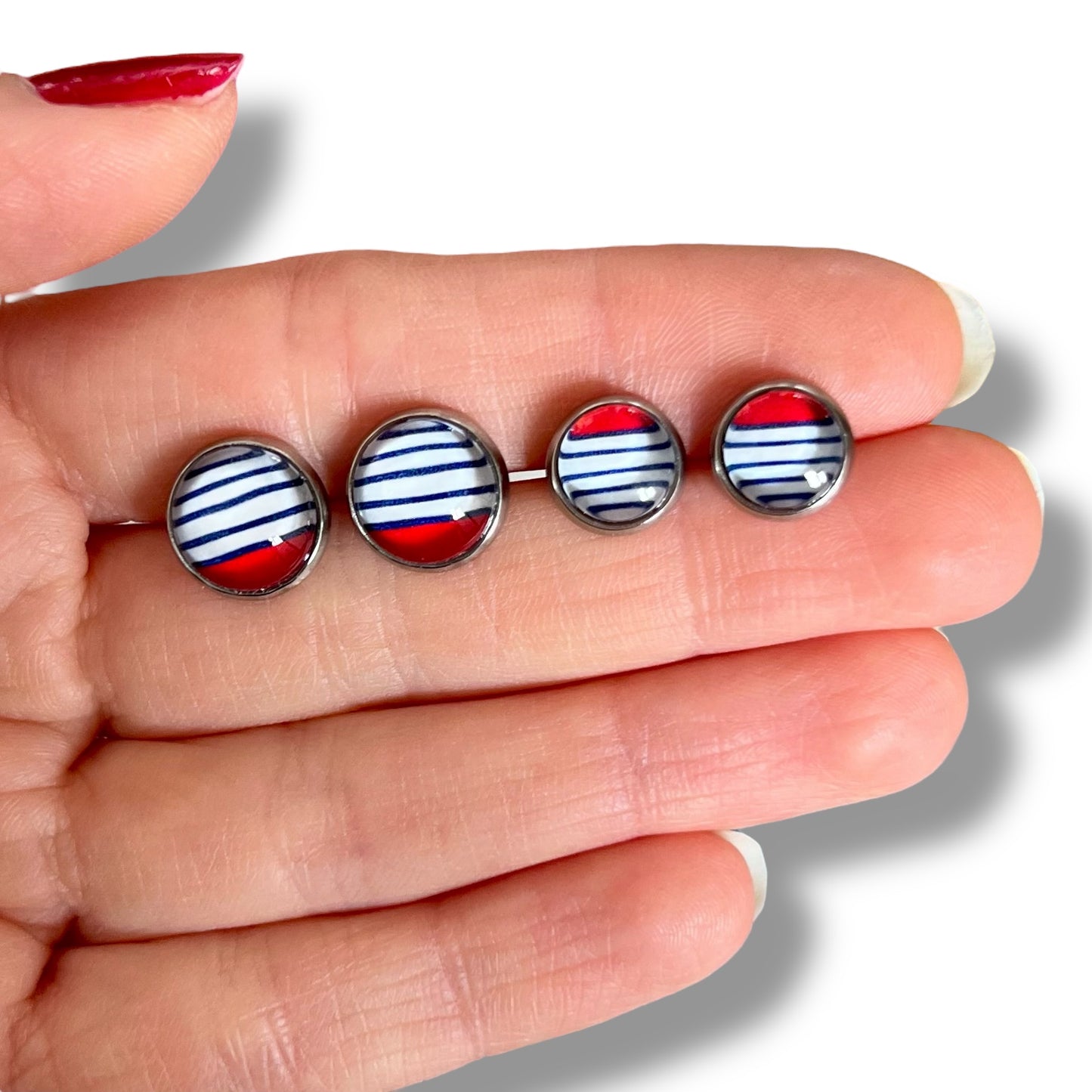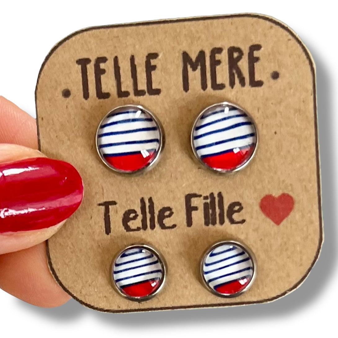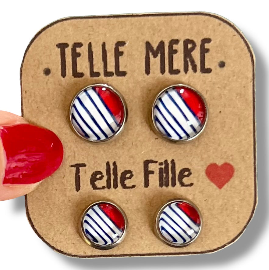 Puces d'Oreilles Mère Fille / "Telle mère, Telle Fille!" rayures rouges et bleues