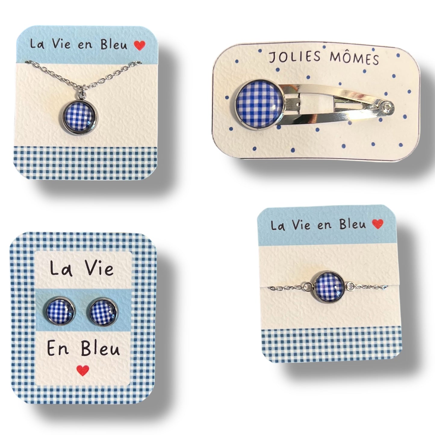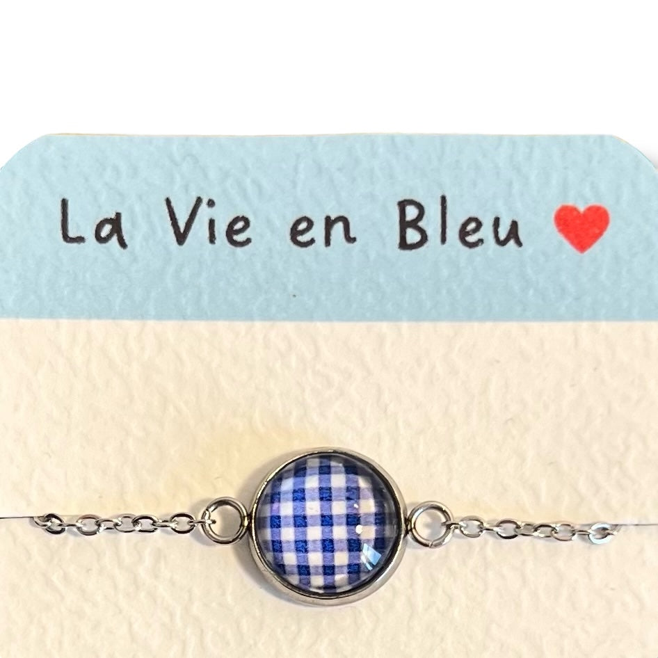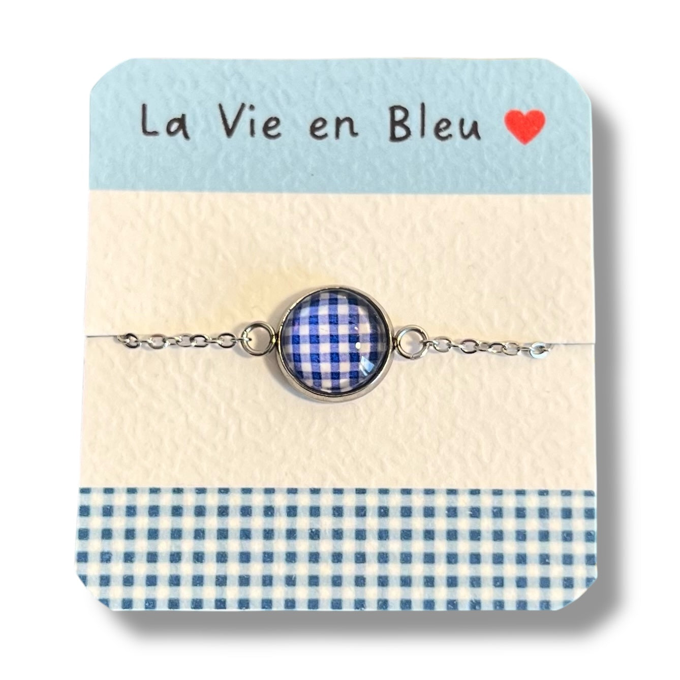 Bracelet Enfant Acier Inoxydable, vichy bleu et blanc