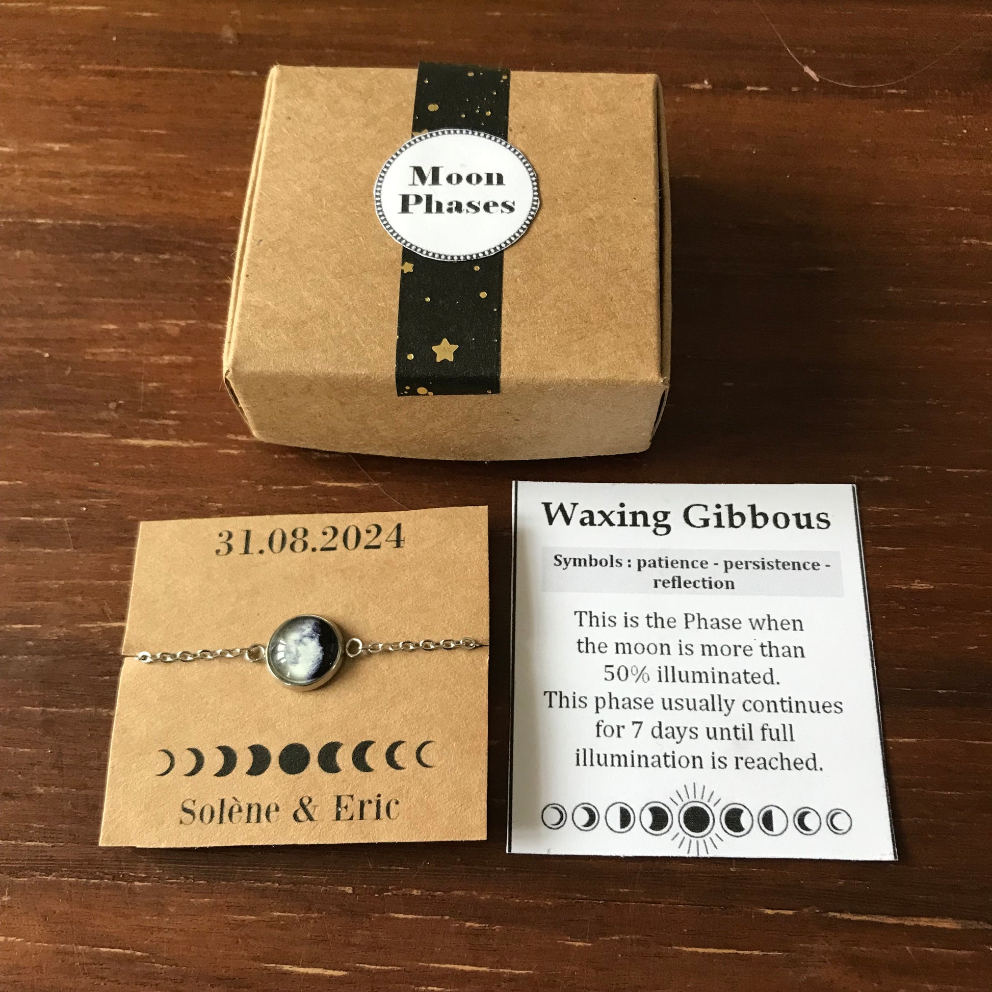 Bracelet phase de lune personnalisé, cadeau personnalisé ♥