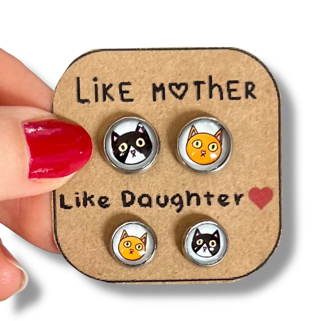 Boucles d'oreilles puces d'oreilles Mère/ Fille colorées sur petit support kraft fait maison ♥